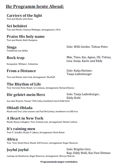 Unser Jahreskonzert kommt zuerst in Bodnegg zur Aufführung. Wir haben viele neue Stücke einstudiert, die Sie in Stimmung und zum Mitklatschen bringen, Sie begeistern, aber auch nachdenkliche Stücke die Sie vielleicht sogar zu Tränen rühren...